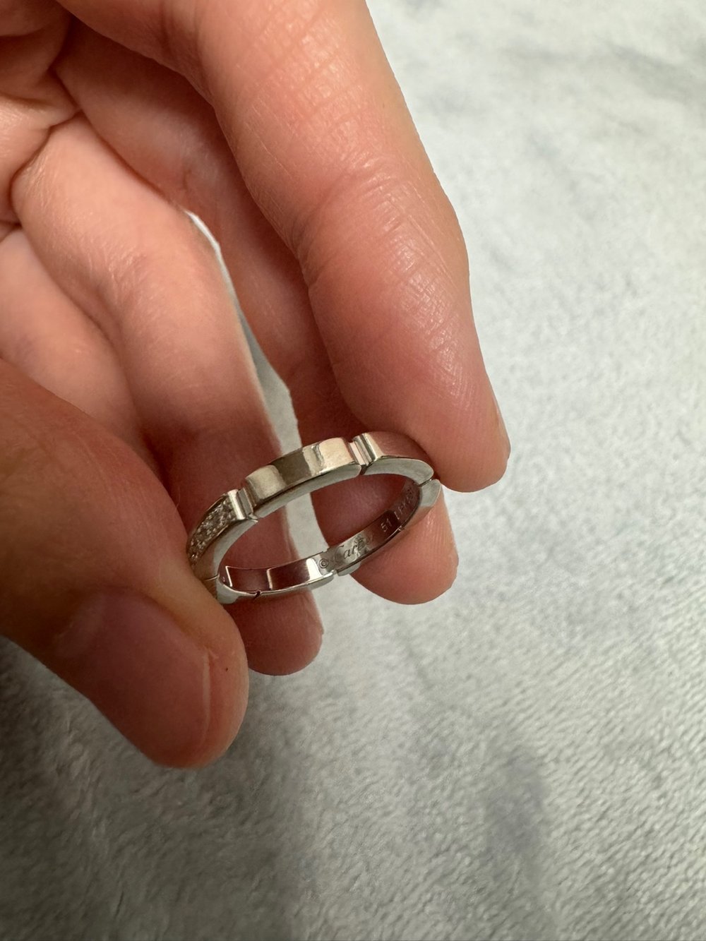 답 프로포즈용으로 남친에게 선물했던건데 헤어지고 간직하다가 저에게는 사이즈가 크기도 하고, 화이트골드 컬러가 어울리지 않아 판매해요