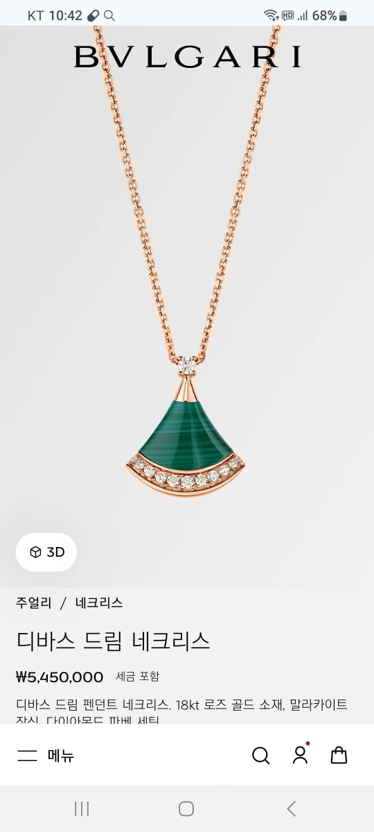 불가리 디바스 드림 말라카이트 목걸이 제품이고