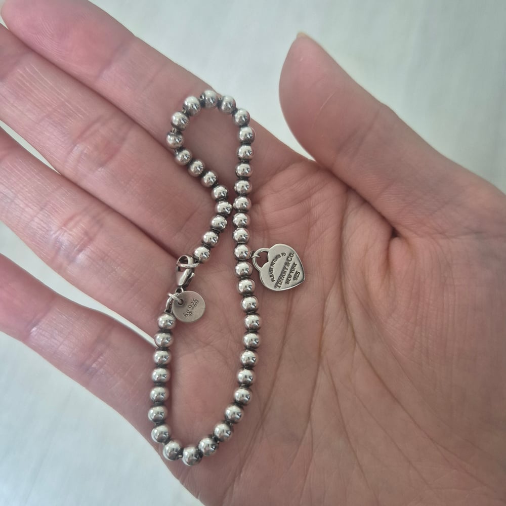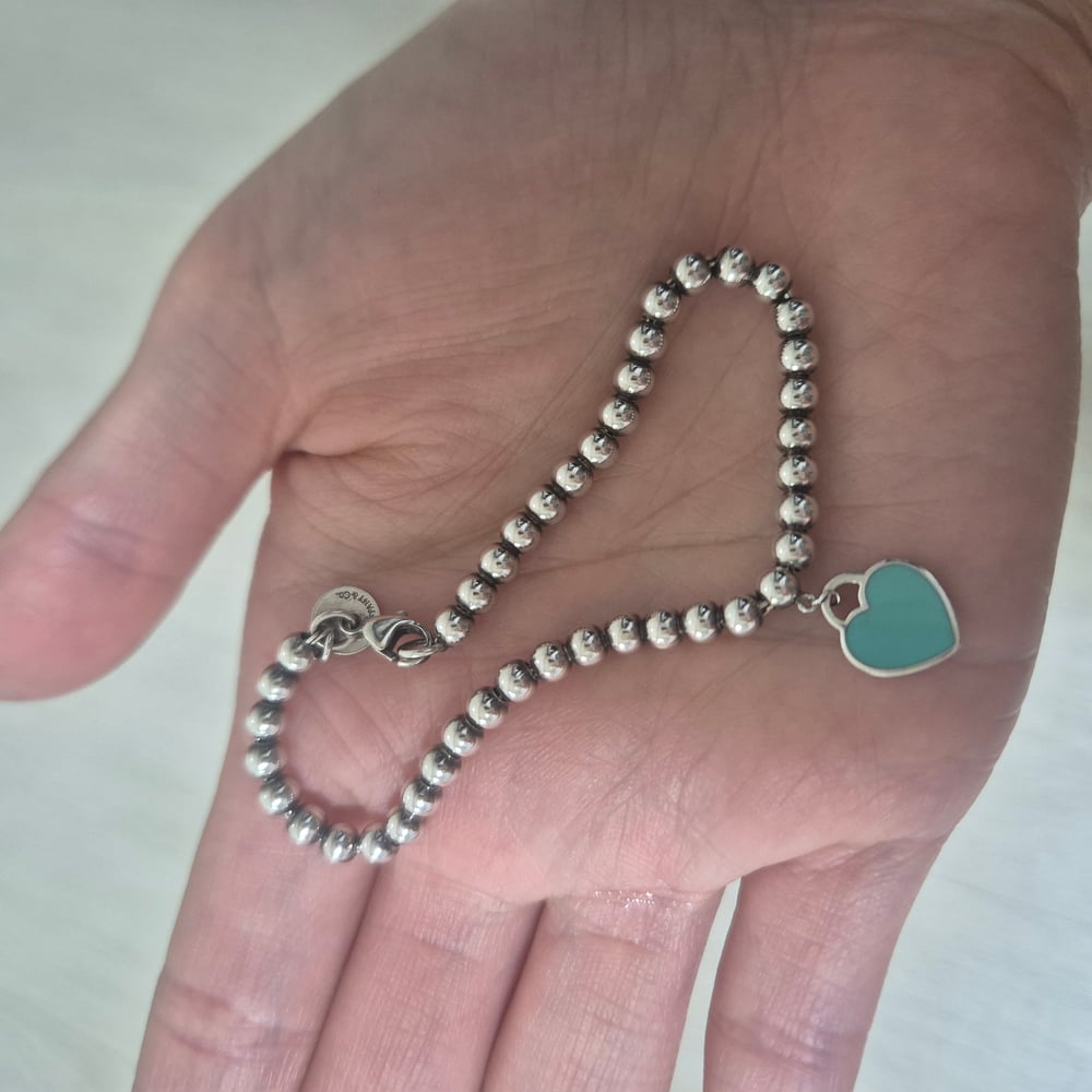 티파니 리턴 투 티파니 블루 하트 태그 비드 브레이슬릿실버, 17cm