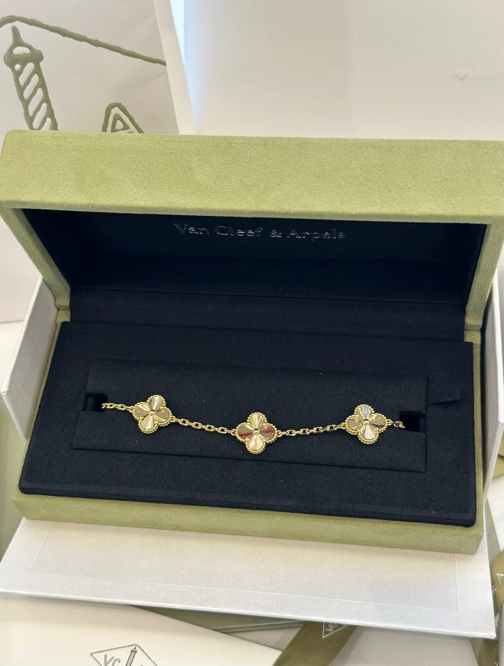 반클리프 아펠 알함브라 기요세 5모티브 브레이슬릿옐로우골드, 19cm