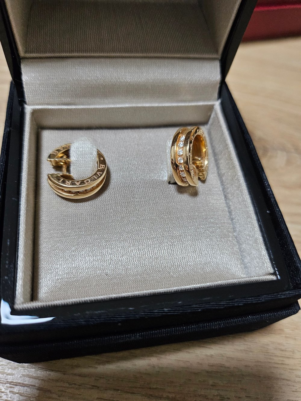 불가리 비 제로 원 후프 이어링SMALL, 로즈/핑크골드, 풀 파베