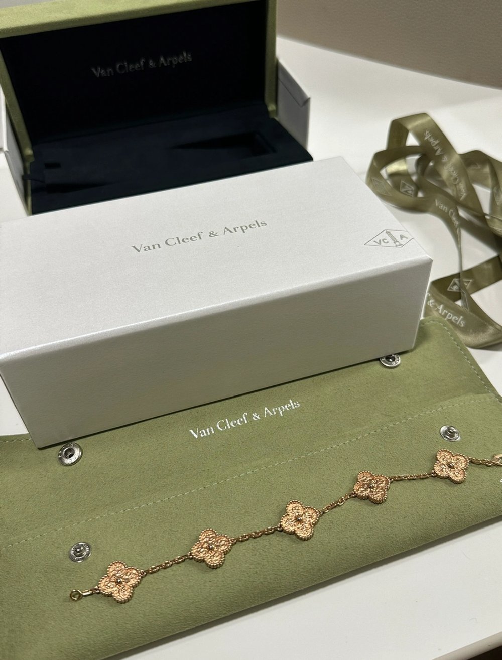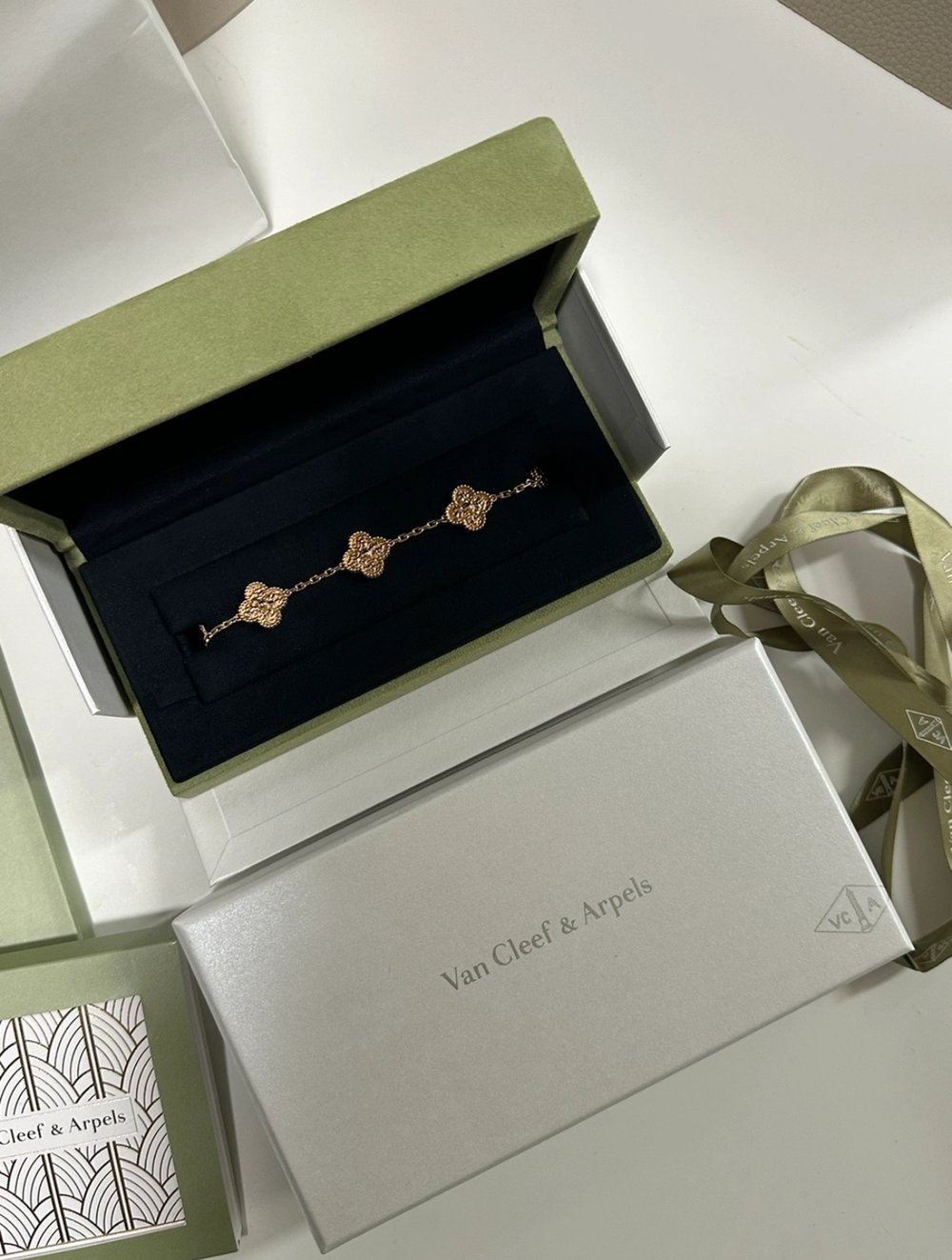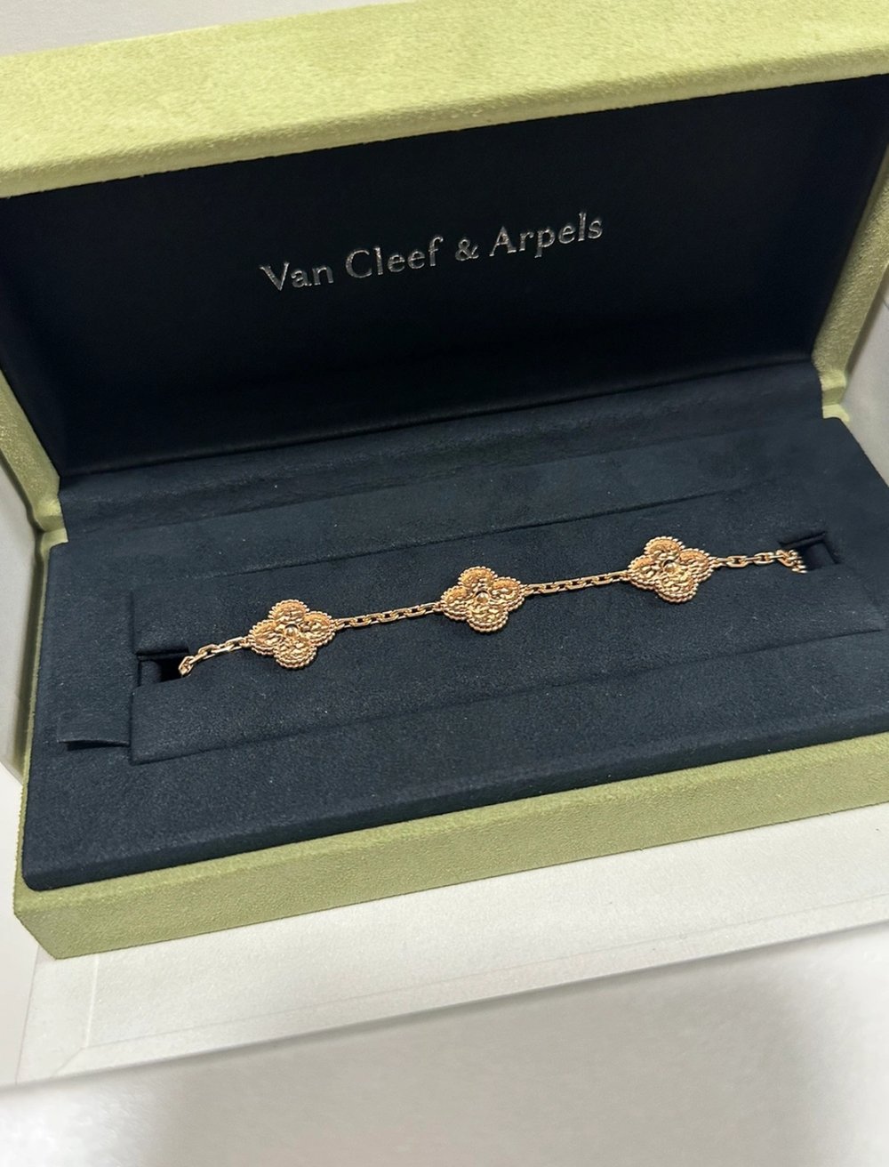 반클리프 아펠 알함브라 해머드 5모티브 브레이슬릿로즈/핑크골드, 19cm