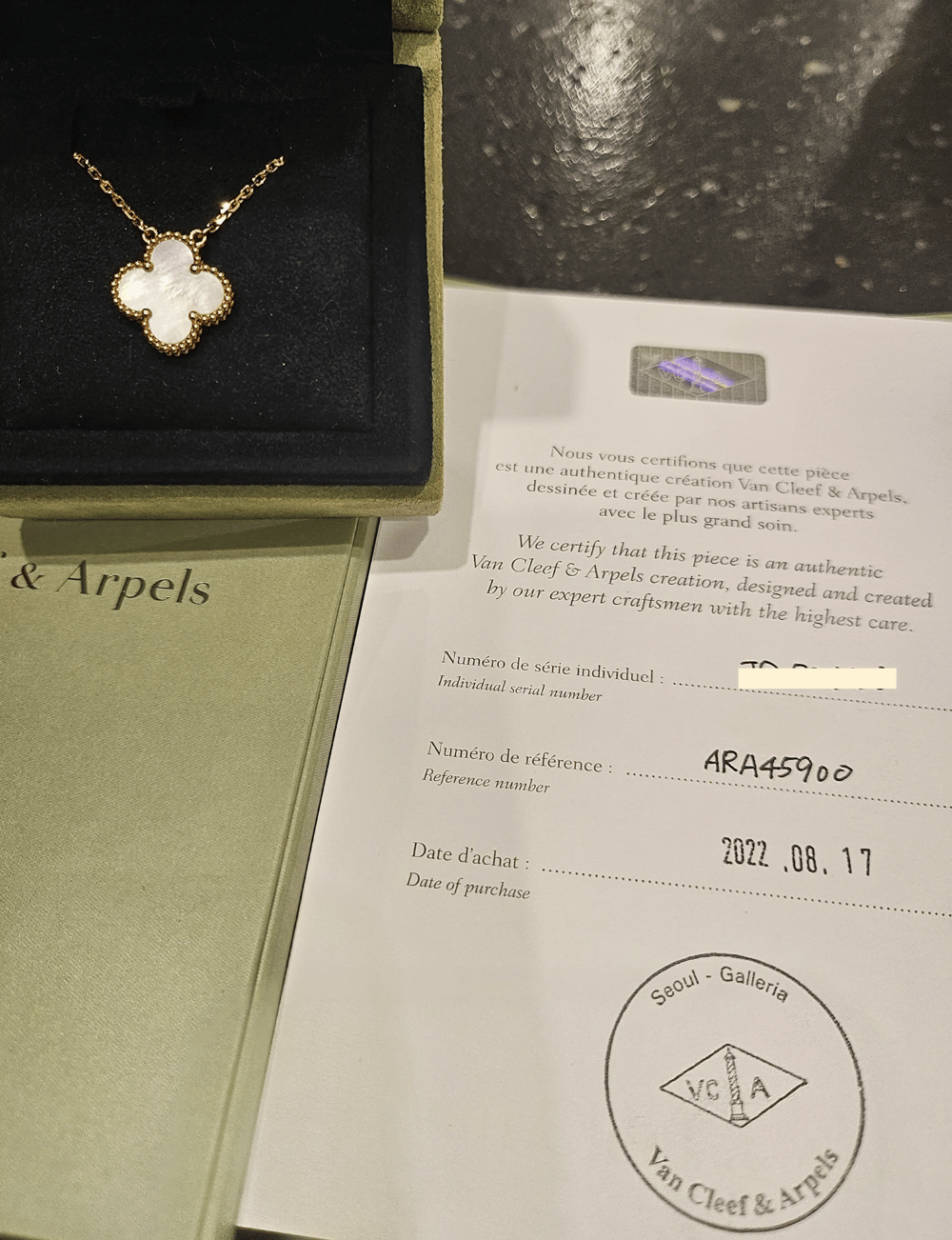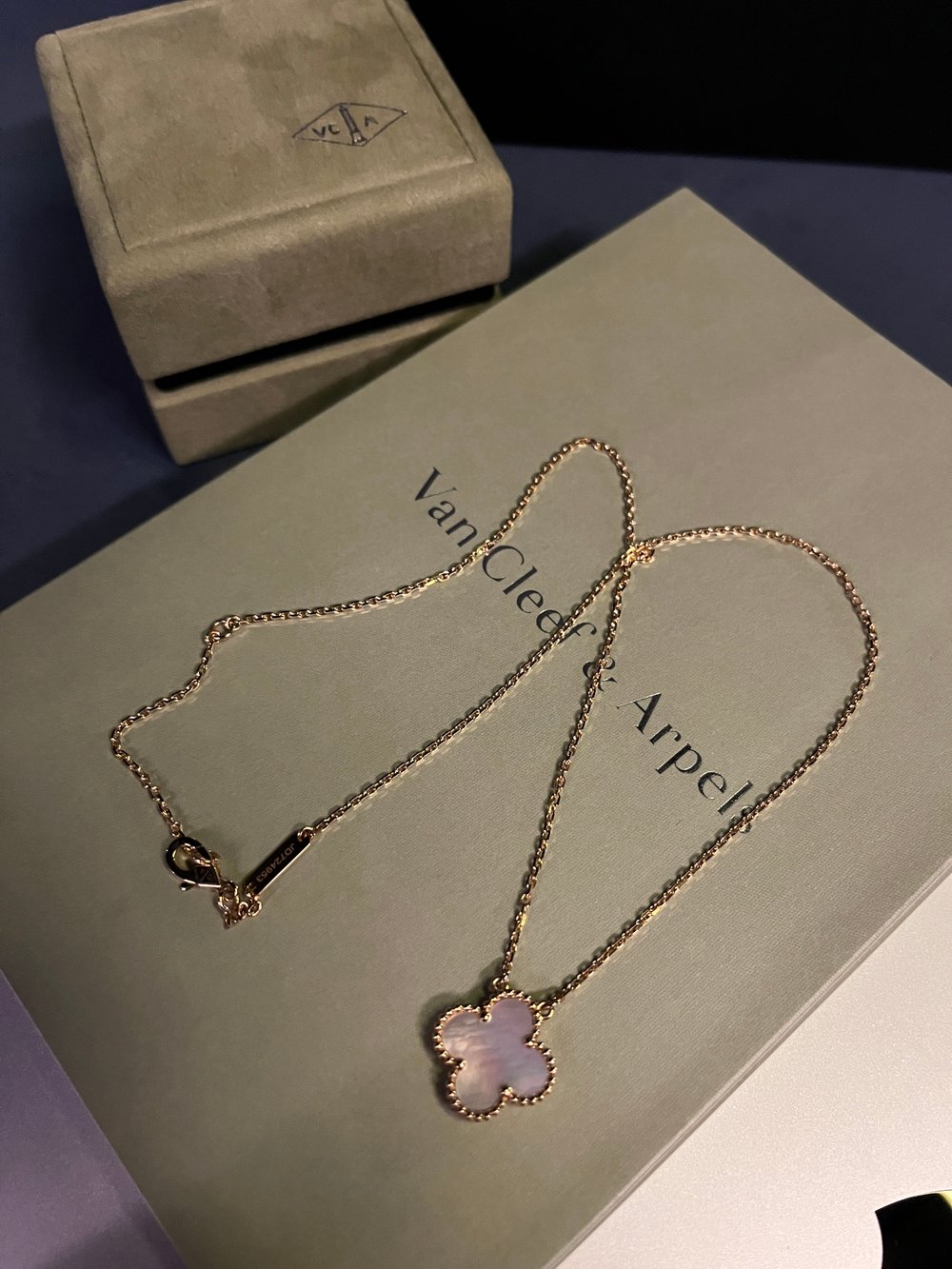 반클리프 아펠 알함브라 빈티지 네크리스VINTAGE, 옐로우골드, 마더오브펄, 42cm
