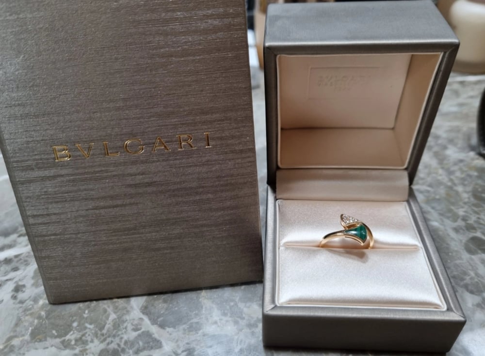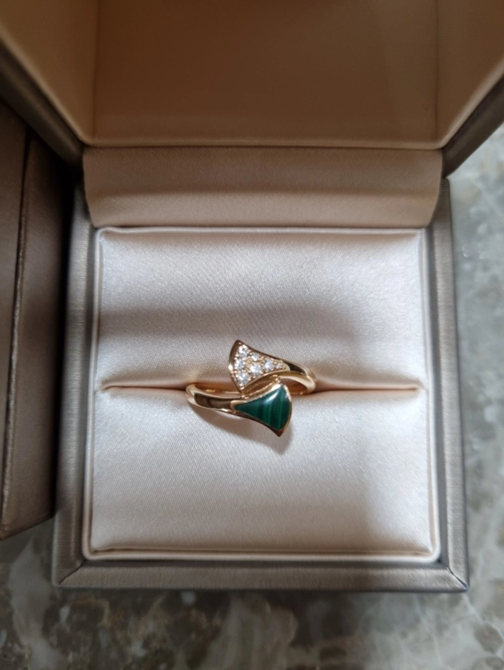 불가리 디바스 드림 링로즈/핑크골드, 말라카이트, 세미 파베, 50호